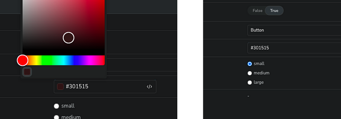 In the above sample code, the backgroundColor has been set to use the colour control by Storybook. In your browser, Storybook would provide a colour picker for you.