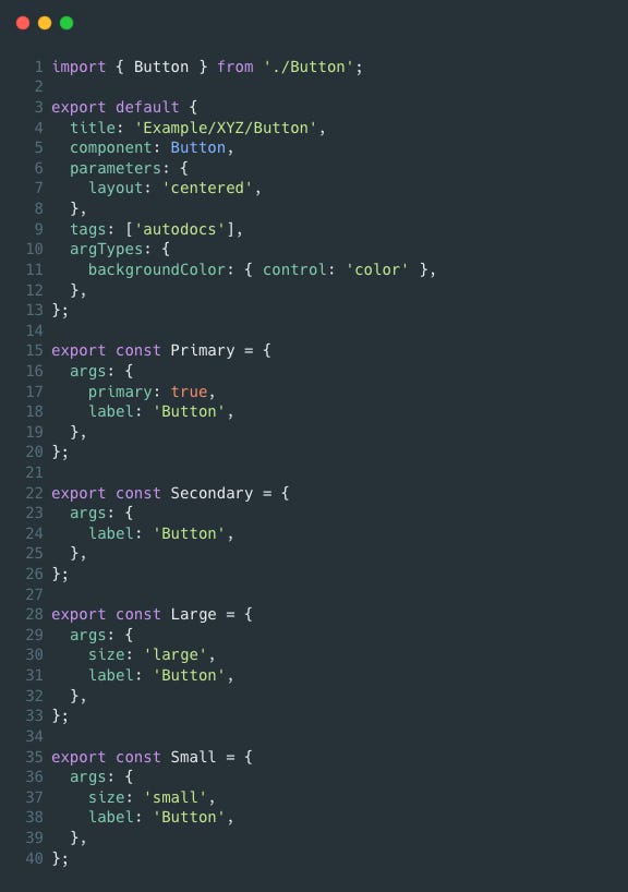 | - Button.stories.tsxLet’s look at the default export.